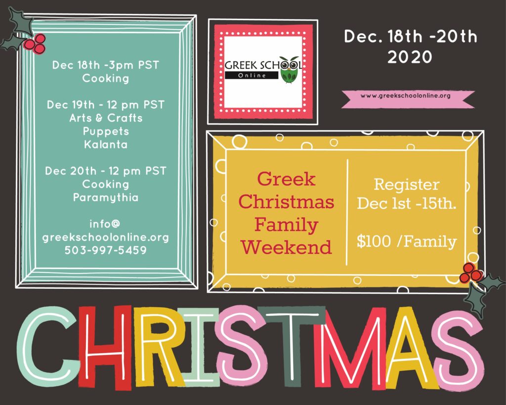 Our Greek School Online was created out of necessity Due to Covid-19 as an effort to preserve and spread the Greek Culture. Our school is open for anyone throughout the United States that is Φιλέλληνας (Philhellenes) and wants to Learn Greek.